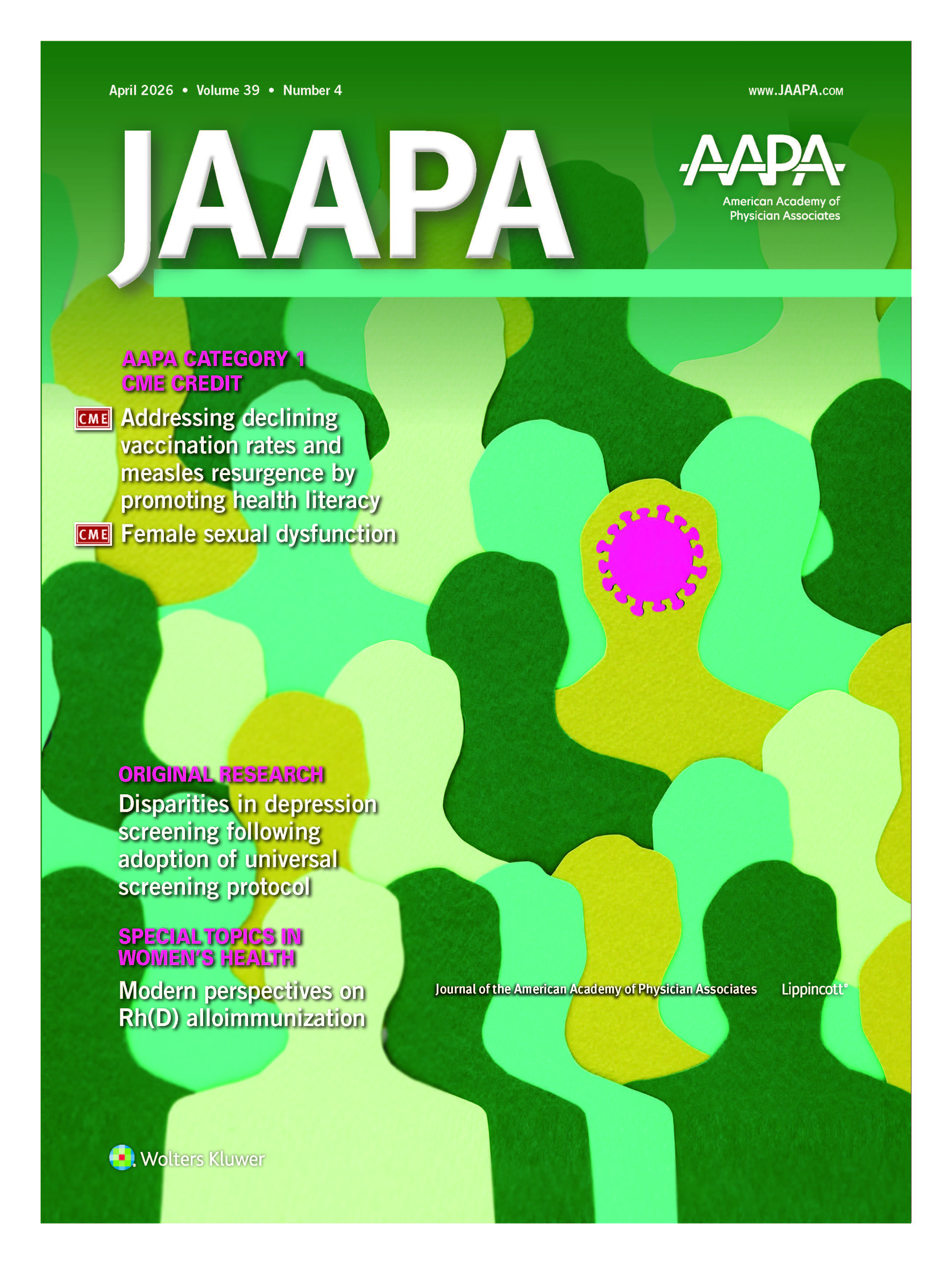 Stay informed with trusted clinical information from the peer-reviewed journal of the AAPA. JAAPA CME post-tests are available in AAPA's monthly clinical journal or online.